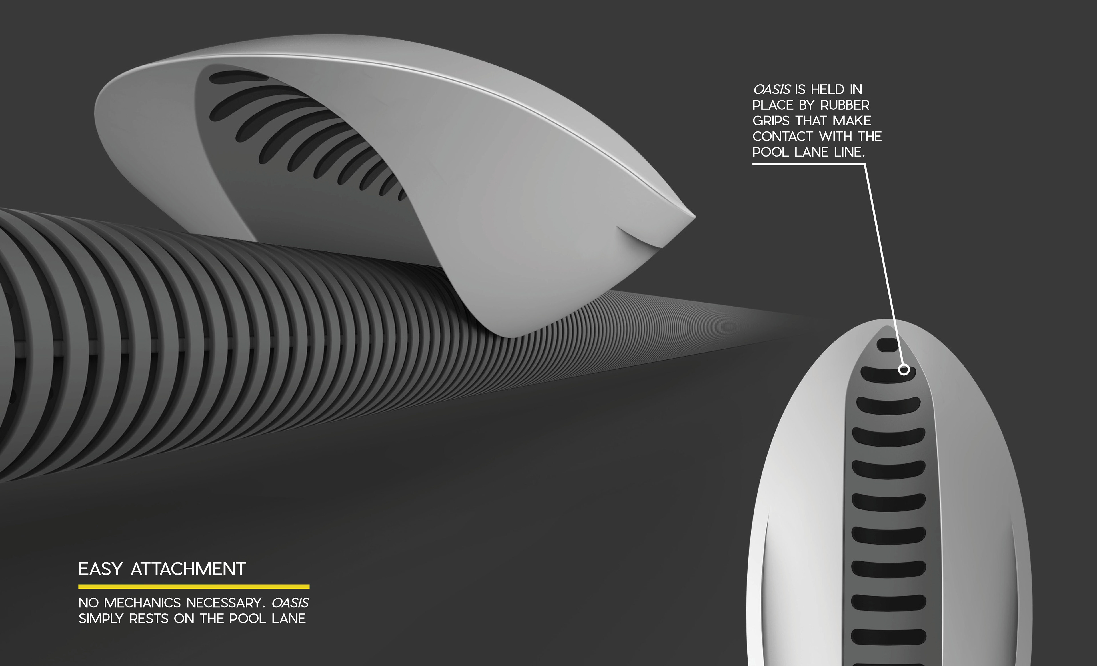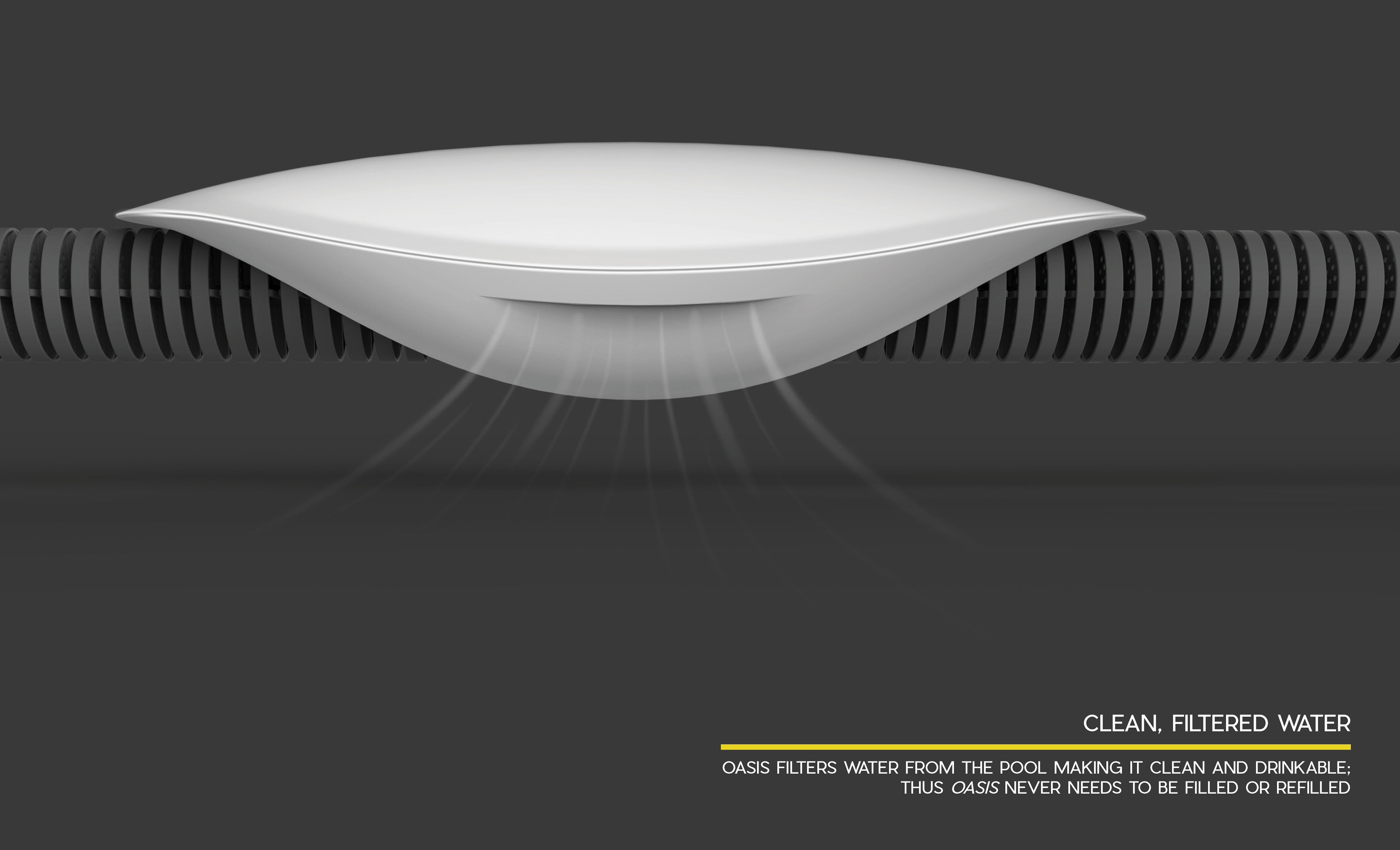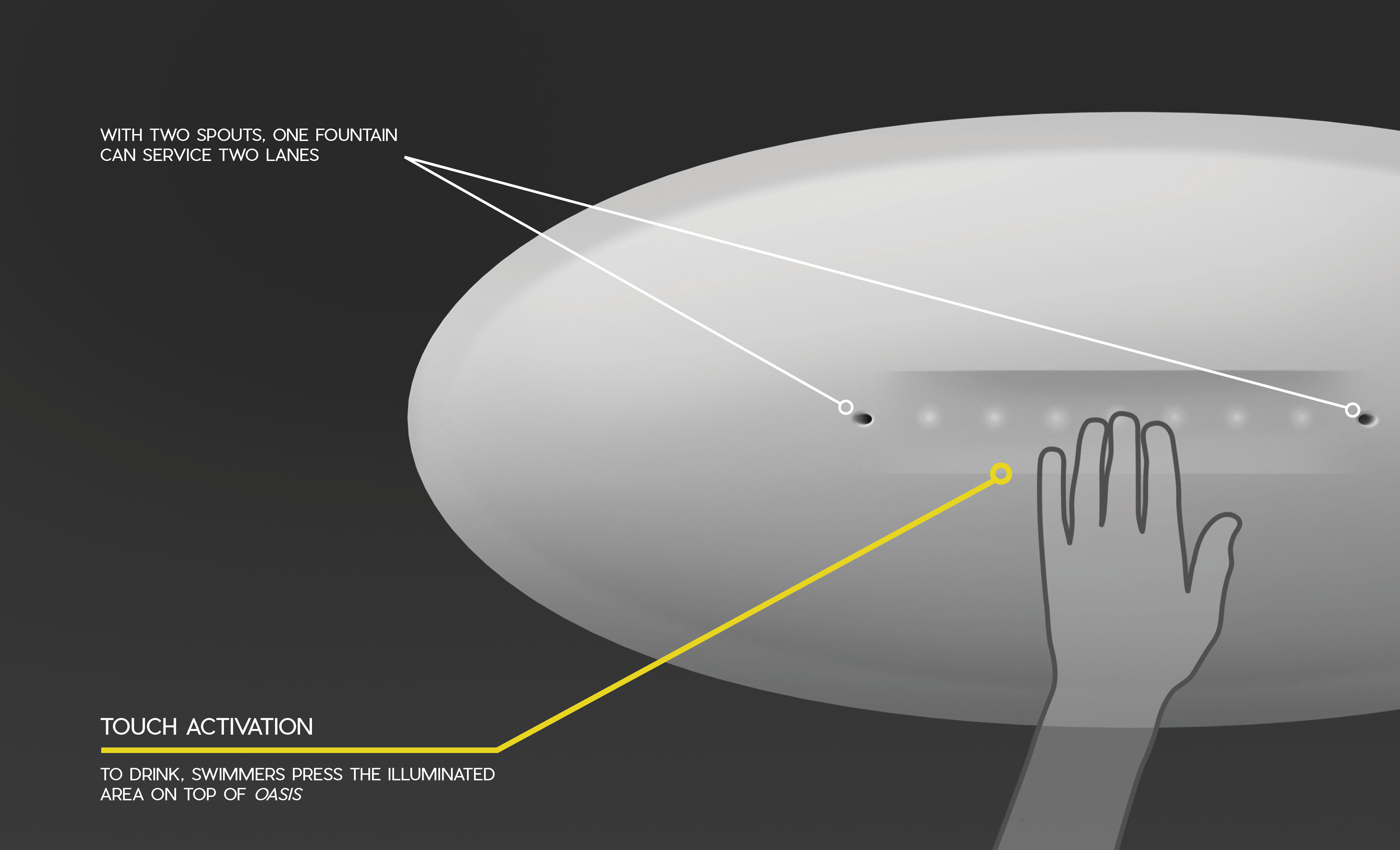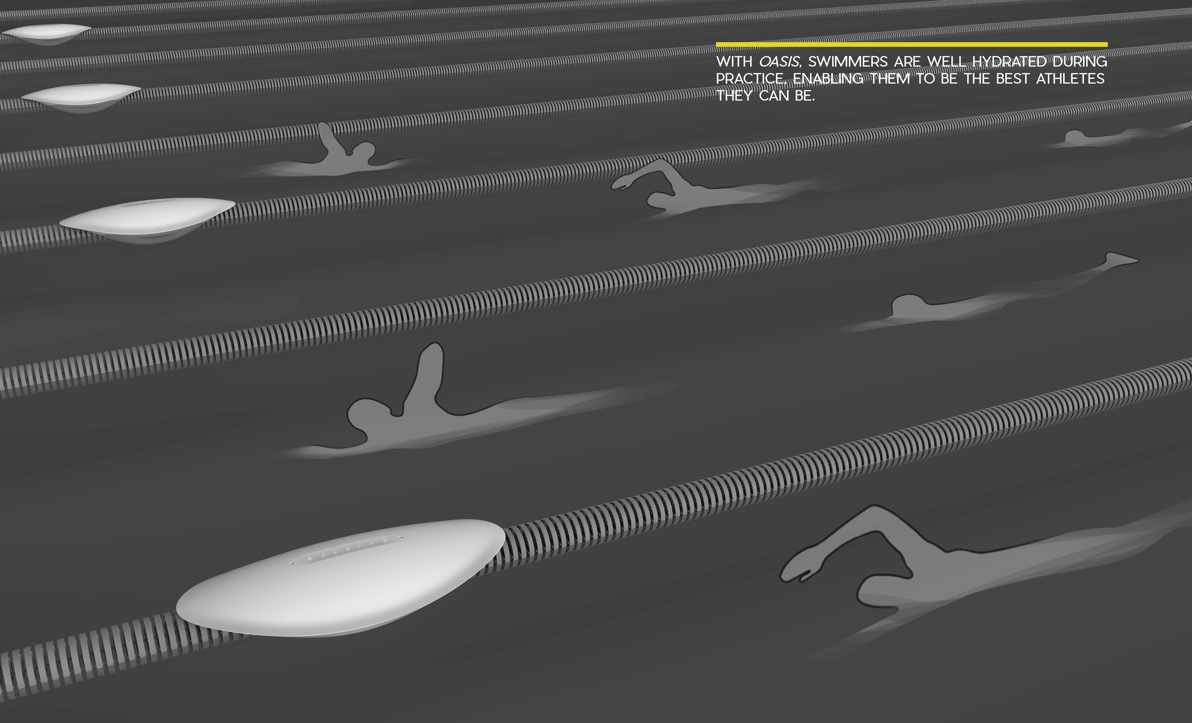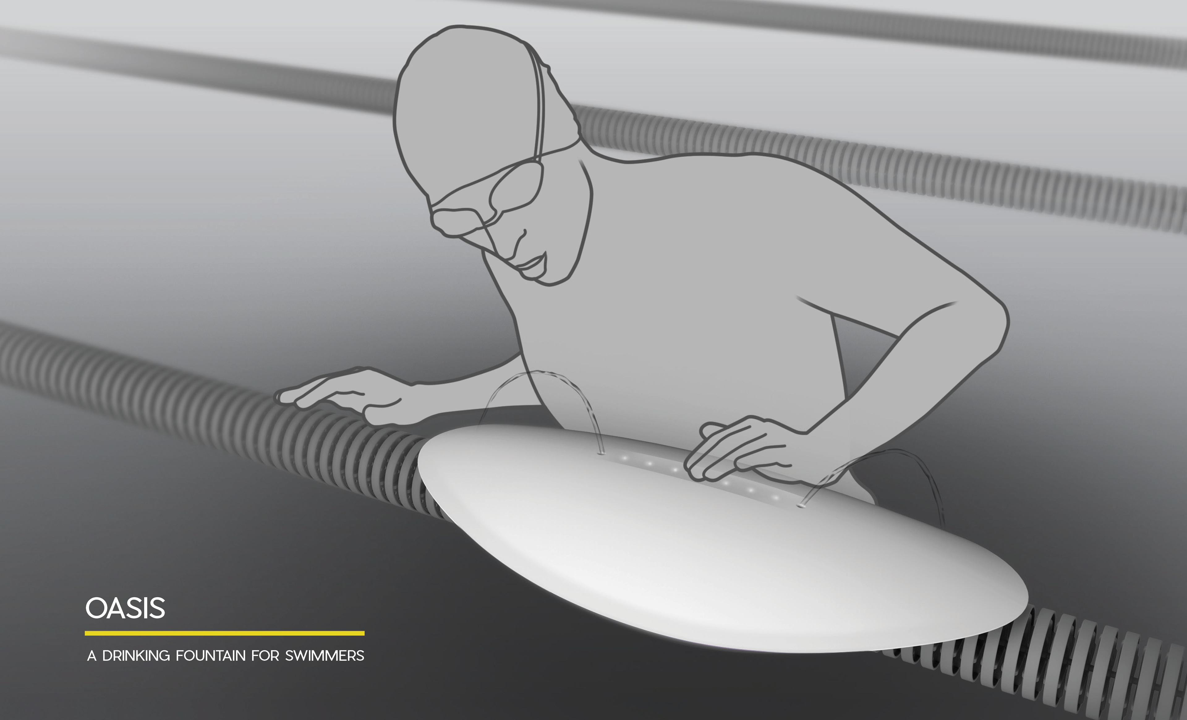 Oasis is a drinking fountain designed for swimmers that functions where they need it most; in the pool itself.